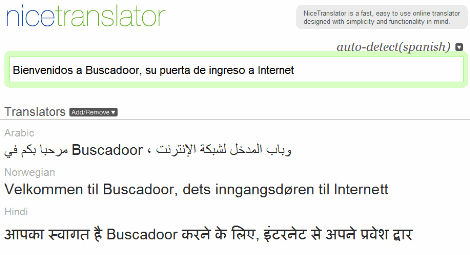 Nicetranslator es un servicio que permite traducir textos desde y hacia 24 idiomas. Su característica especial es que la traducción se hace a medida que se van escribiendo las palabras.