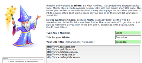 Un truco para enviar en un solo link un serie de links a diferentes páginas. Como el conocido Tinyurl, muy usado en Twitter para achicar direcciones web, MinMu cumple la misma función, pero además permite hacer un