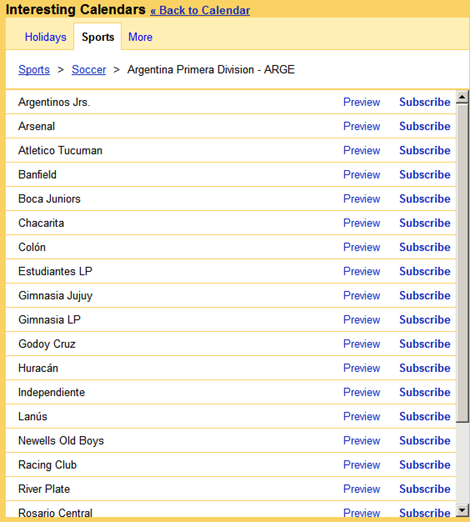 Calendario de fútbol, país por país Un truco de Google Calendar permite conocer los días en que juega cada partido un equipo de fútbol. Estos calendarios ubican en el almanaque de 2009 las fechas del fútbol argentino,